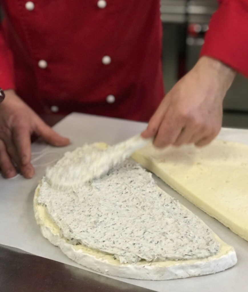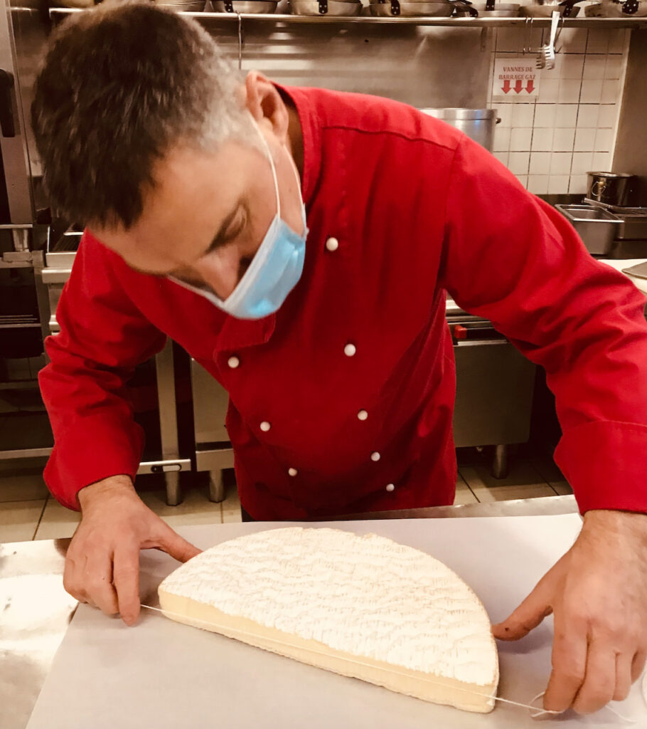 Astuce du Chef : pour ouvrir un Brie entier horizontalement en deux proprement, j’utilise une ficelle de cuisine